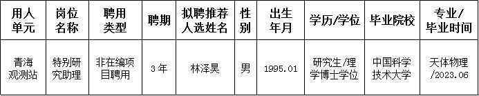 中国科学院紫金山天文台关于公开招聘特别研究助理岗位拟聘推荐人选的公示--林泽昊