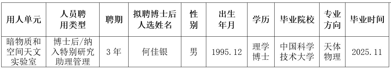 关于2026年中国科学院紫金山天文台拟聘博士后人选的公示--何佳银