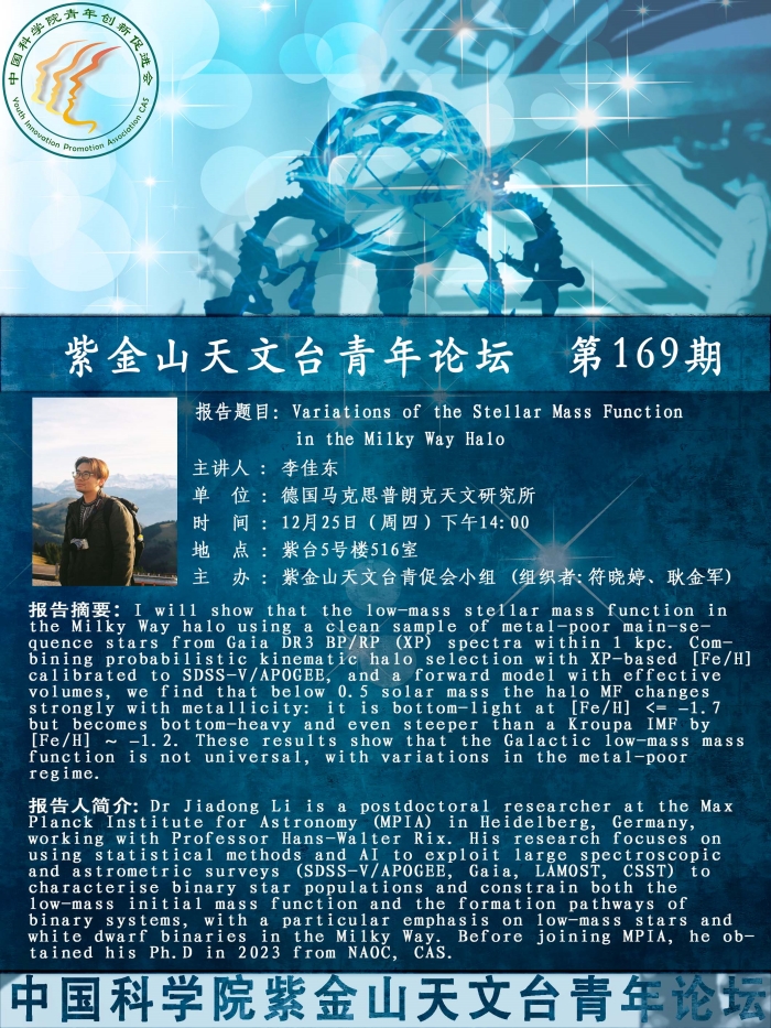 青年论坛第169期:Variations of the Stellar Mass Function in the Milky Way Halo