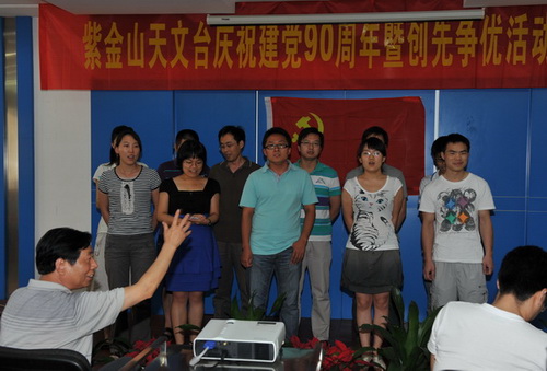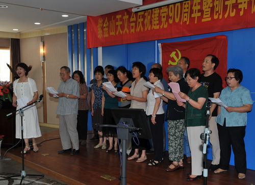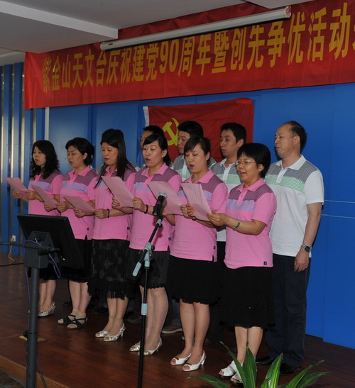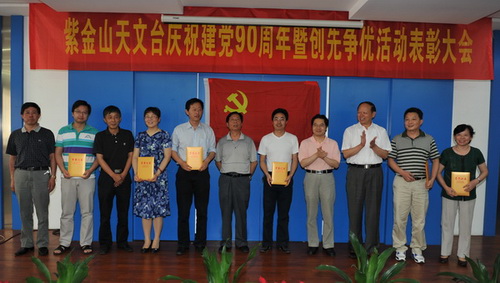 2011年6月30日下午,紫金山天文台隆重举行庆祝建党90周年暨创先争优活动表彰大会,并开展了“红歌献给党”文艺汇演。四楼会议室内济济一堂,全台160余名党员以及民主党派代表、职代会代表等出席大会。