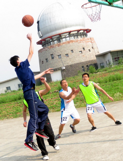 为丰富职工和研究生的业余生活,提高身体素质,增强团队协作意识,5月23日,紫金山天文台团委在盱眙观测基地举办了第二届职工三人制篮球比赛。比赛由四个队组成,队员们分别来自研究团组、机关部门、研究生和盱眙站。 比赛场上,双方队员都迅速进入状态,以矫健熟练的动作迅速传球,个个雄姿英发。队员们激情高涨,在场上你争我夺、你攻我守,争夺异常激烈。现场的拉拉队们不时呐喊助威,球场气氛十分活跃。在经过六轮角逐后,机关队以全胜的战绩摘得第一名的桂冠,为此次比赛画上了圆满的句点。这次比赛,队员们不仅打出了技术含量,更是体现了团队合作的精神,他们用自己的激情与汗水传达着对运动,对生活的热爱。