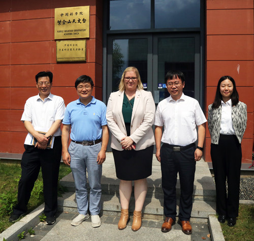 6月25日,澳大利亚驻华大使馆工业、科技和创新参赞Joanna Bunting女士访问中国科学院紫金山天文台,紫金山天文台副台长毛瑞青、吴雪峰,中澳天文联合研究中心(ACAMAR)中方联络人杨戟,科技处长宁宗军等参加了座谈。