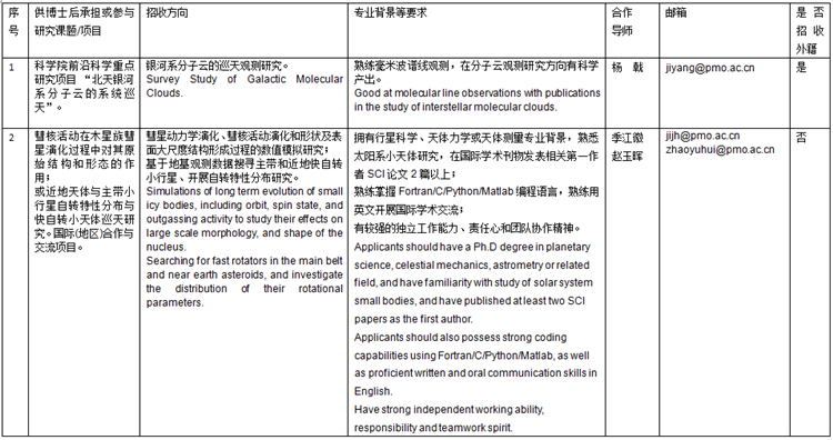 附件下载:1、中国科学院紫金山天文台博士后研究岗位申请表