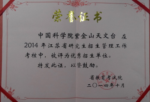 紫台历来对研究生招生管理工作高度重视,以台长为组长,分管台长为副组长的研究生招生工作领导小组对紫台的招生工作明确责任,实施领导,并切实解决招生工作中的实际问题。江苏省教育考试院充分肯定了紫台在全国研究生招生管理工作中的水平和质量,因此再次获得该荣誉称号。