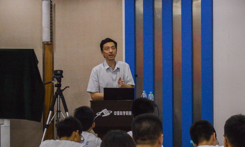 暑期夏令营的开营仪式一结束,由紫金山天文台(紫台)各研究团组导师组成的学术报告团开始了夏令营的的学术报告会活动。首先由常进研究员作《空间探测暗物质粒子》报告,详细介绍了暗物质探测方法以及暗物质粒子探测卫星的概况。史生才研究员、范一中研究员、韦大明研究员、郑宪忠研究员、吴德金研究员分别作《超导探测器在天体物理中的应用》、《宇宙物理学研究前沿及“悟空”团队研究生的主要工作》、《宇宙伽玛射线暴》、《星系的故事》、《太阳和太阳系等离子体研究》一系列学术报告。