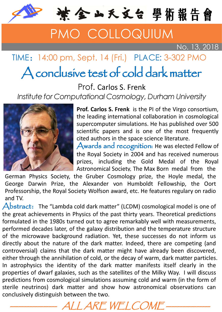 9月14日 PMO Colloquium:A conclusive test of cold dark matter
