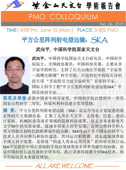 6月10日 PMO Colloquium:平方公里阵列射电望远镜:SKA