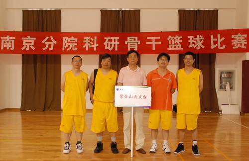 6月17日,南京分院组织院内6个研究所科研骨干参加的篮球比赛。紫金山天文台由江治波、傅燕宁、蔡明生、宁宗军研究员组成代表队参赛,并获得了三等奖。