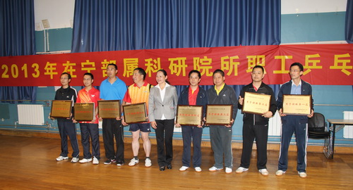 为了广泛开展群众性体育活动,丰富职工文化体育生活,增强职工体质,加强科研院所职工之间的交流,增进友谊,2013年10月19日江苏省教科工会在南京体育学院举办了在宁部属科研院所职工乒乓球团体比赛,我台组成男、女各一支代表队参加比赛,经过一天激烈紧张的角逐,我台女队因技不如人,所以成绩平平,未能进入前八名;男队不负众望在小组赛中技压群雄以全胜的战绩获得小组第一进入前八名,前八名中高手云集,比赛更加惨烈,我台首轮就遇上实力强劲的14所男队,所以惨遭淘汰,尔后在争夺5-8名比赛中大家放下包袱,顽强拼搏,先后战胜55所和28所,最终获得团体第五名。