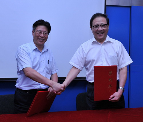 签字仪式上,段瑞春、杨戟分别代表何梁何利基金评选委员会和紫台在合作备忘录上签字。