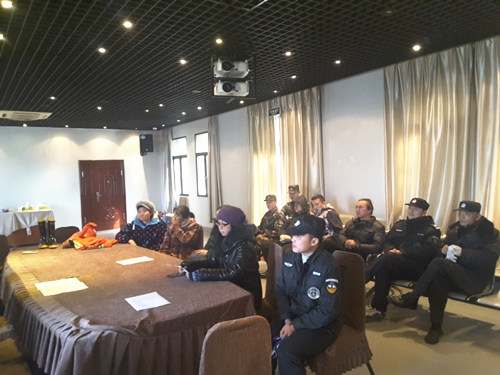此次演练的内容包括三个部分。首先,所有参演人员集合在报告厅,学习紫金山园区消防应急预案与相关消防器材的使用方法,明确发生火情时应该如何应对。随后,全体参演人员来到大台展厅,模拟火情发生时如何疏散游客。最后大家又转移到园区东停车场,进行了实战演练,模拟园区内失火后各方处置措施,具体的演习流程是:1.联系物业负责人;2.联系武警;3.义务消防员穿好消防服立刻赶往失火点,观察火势以及失火原因,报火警并说明火情,判断火势是否控制或扑灭,根据情况选择行动方案;4.安排科普部其他职工维持现场秩序,疏散游客;5.向台安全部门汇报情况。物业演习的火警应对流程是:控制大门口,立即停止售票,疏散大门口游客,组织人员奔赴失火点协助灭火,大门口留人维持秩序以及为后来的消防车指路。武警演习的火警应对流程是:立刻穿戴消防服,携带消防设备,奔赴失火点控制火情。
