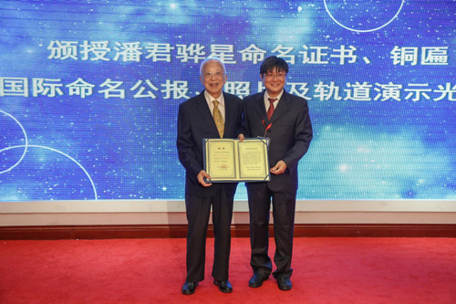 图4 吴雪峰向潘君骅院士颁授“潘君骅星”命名证书