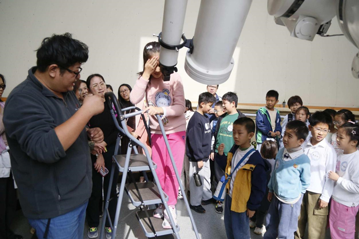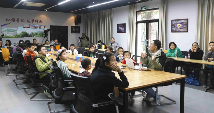 青岛观象台向公众敞开了具有百年历史的圆顶观测室,参与者不仅通过大型专业望远镜亲身体验了太阳观测,还通过专题展板深入了解了观象台持续百年的太阳黑子观测历史。现场展示的旋转星座图与珍贵陨石样品,引起了观众的浓厚兴趣。此外,青岛观象台工作人员还携带展板、望远镜等器材走进青岛新世纪学校,举办了一场生动的科普讲座,将天文的魅力带进校园。