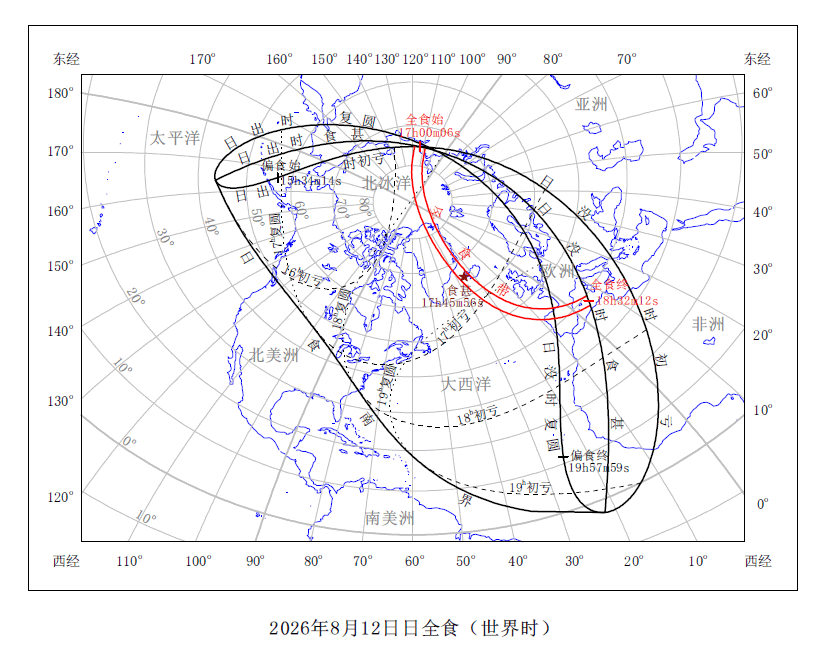 2026年8月12日日全食见食区域图