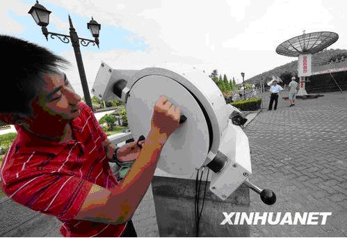 7月21日,紫金山天文台的天文工作者在苏州上方山观测点准备日食闪光谱仪。新华社记者孙参摄