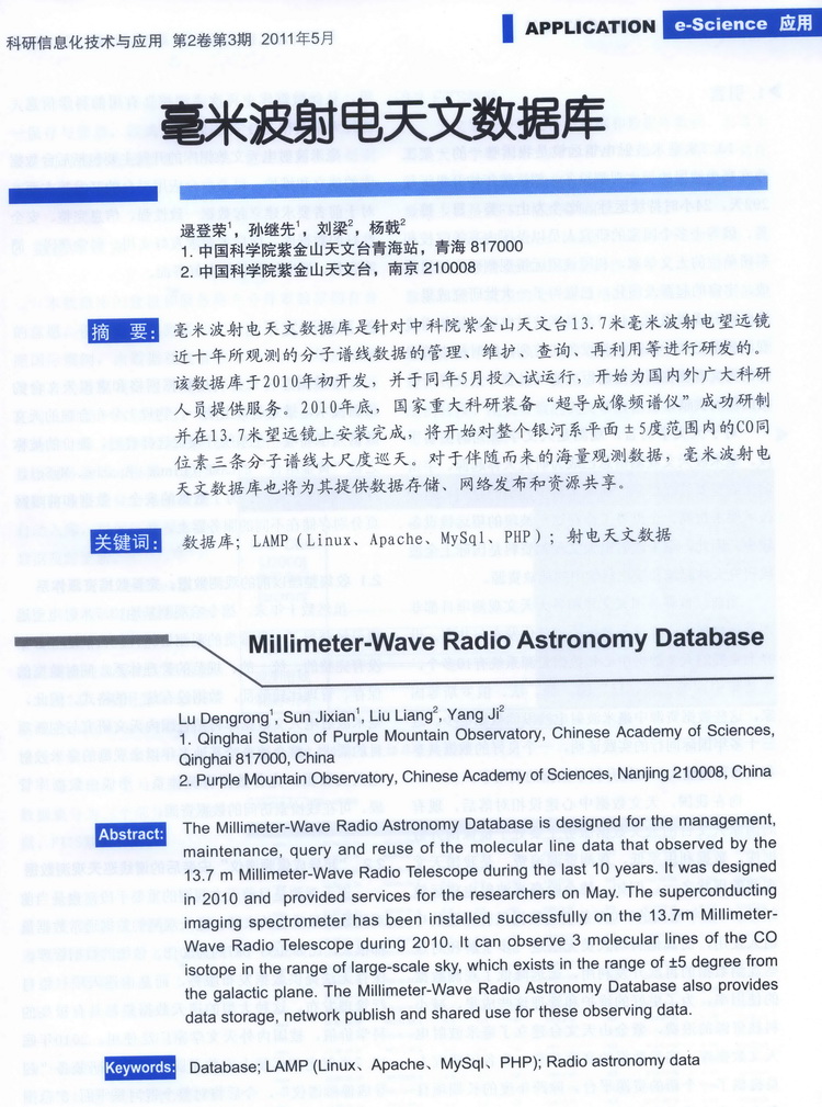 05-30 《科研信息化技术与应用》(第2卷第3期 2011年5月)毫米波射电天文数据库