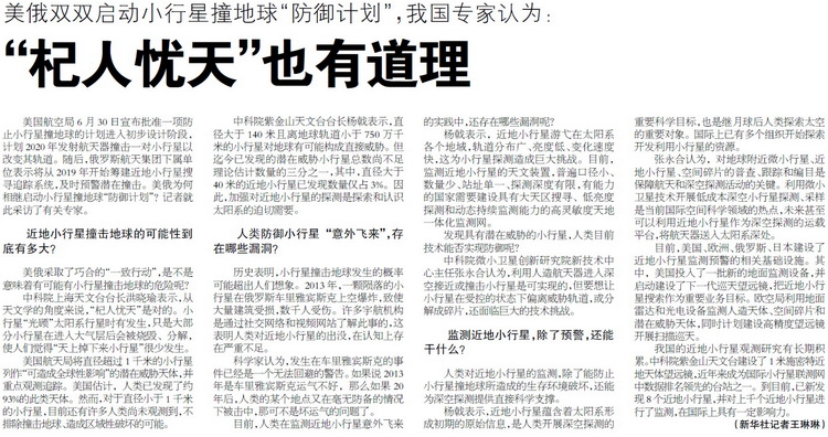 《中国科学报》美俄双双启动小行星撞地球“防御计划”,我国专家认为:“杞人忧天”也有道理