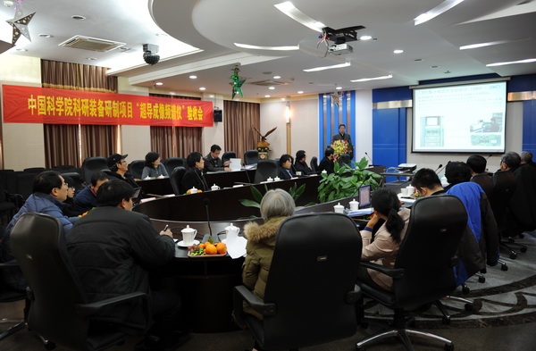 验收会上,项目负责人杨戟研究员介绍项目总体情况和经费决算报告。项目技术负责人史生才研究员做项目研制技术报告。用户使用报告、测试报告、经费收支审查报告也一一向验收组领导和专家汇报。验收会前,测试组还对超导成像频谱仪进行了现场考察。