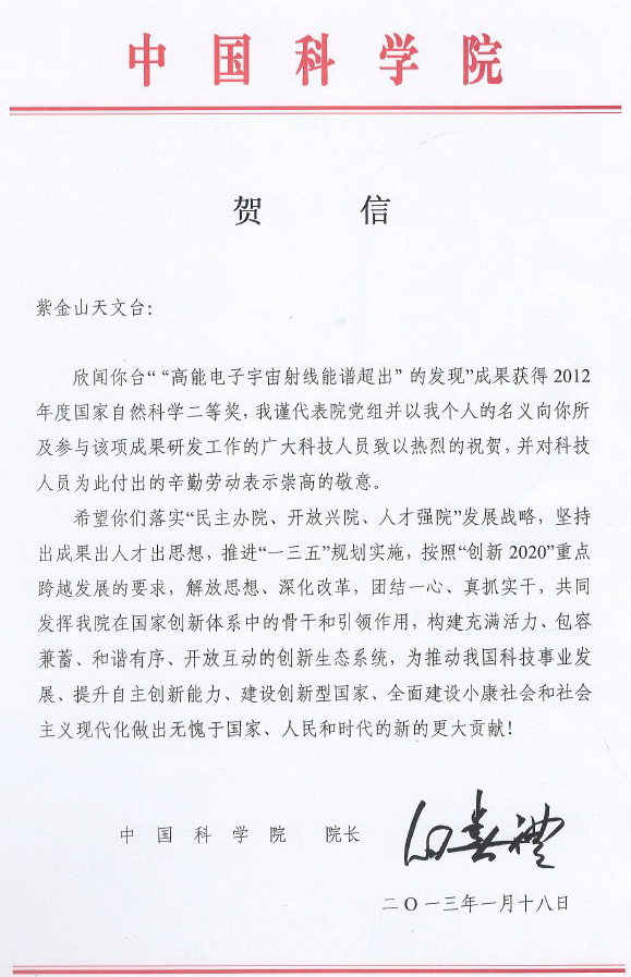 紫金山天文台《“高能电子宇宙射线能谱超出”的发现》荣获国家自然科学奖二等奖,主要完成人:常进。