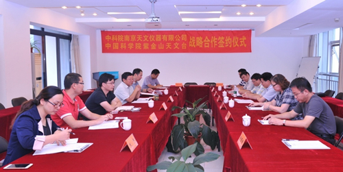 2015年9月25日,中科院南京天文仪器有限公司-中国科学院紫金山天文台全面战略合作框架协议签订仪式在中科院南京天文仪器有限公司举行。天仪公司董事长王永、党委书记华伟、总经理王进步,紫金山天文台台长杨戟、党委书记张丽萍、副台长常进等人出席了签字仪式。