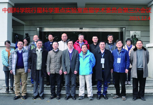 2015年12月4日,中科院行星科学重点实验室首届学术委员会第三次会议在上海松江召开。上海航天技术研究院徐博明研究员、中科院地质与地球物理研究所李献华研究员、南京大学周济林教授、中国科学技术大学陈出新教授、北京航天飞行控制中心胡松杰研究员、中科院紫金山天文台吴德金研究员、中科院上海天文台吴斌研究员等11位专家参加了此次学术委员会会议。中科院行星科学重点实验室还邀请了中科院前沿科学与教育局重点实验室处李云龙副处长、中科院前沿科学与教育局数理化处毛羽丰副研究员、上海天文台沈志强副台长、科技处商琳琳副处长等专家参加。会议由学术委员会主任紫金山天文台徐伟彪研究员主持。