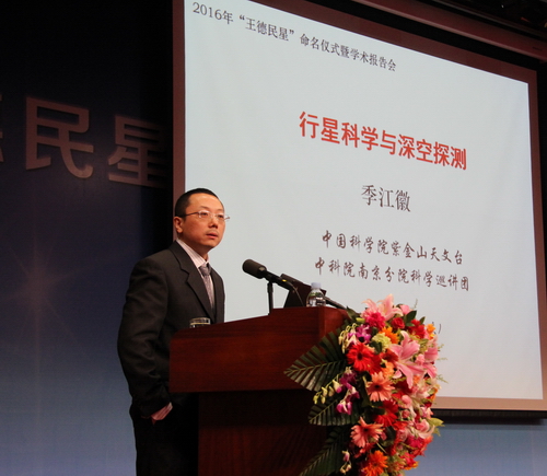 赵海斌介绍了“王德民星”发现过程和轨道运行情况