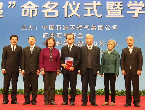4月12日上午,由中国石油天然气集团公司、何梁何利基金、中国科学院紫金山天文台(以下简称紫台)联合举办的“王德民星”命名仪式暨学术报告会在大庆油田隆重举行。出席本次活动的有:国家科技部原部长、何梁何利基金信托委员会主席、评选委员会主任朱丽兰,国务院国资委国有重点大型企业监事会原主席、何梁何利基金评选委员会秘书长段瑞春,中国工程院党组成员、秘书长钟志华,中国石油天然气集团公司副总经理、党组成员喻宝才,紫台党委书记、副台长张丽萍,以及国家科技部、国家科技奖励工作办公室、中国石油天然气集团公司、黑龙江省科技厅、大庆市政府、大庆油田有限责任公司等相关领导和专家,以及大庆油田的青年科技工作者代表和学生代表,共400余人。