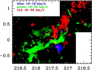 紫金山天文台“银河画卷”计划(http://www.radioast.nsdc.cn/mwisp.php)银道面分子谱线巡天团队在天文与天体物理杂志(Astronomy & Astrophysics)发表最新研究成果,对银道面(216.25°≤l≤218.75°,−0.75°≤b≤1.25°)范围内共约3.75平方度的天区进行了12CO/13CO/C18O(J=1-0)三条同位素谱线同时观测,并结合红外卫星和毫米波尘埃连续谱档案数据研究了其中分子云的物理性质以及与之成协的恒星形成。