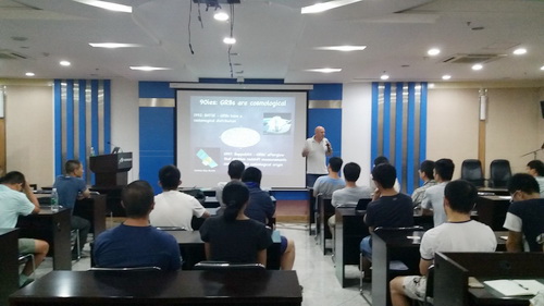 2017年8月16日,应韦大明、范一中研究员的邀请,以色列希伯来大学物理系Tsvi Piran教授访问紫金山天文台并做“GRBs, Mergers and the origin of Gold (and other heavy elements)”学术报告。紫金山天文台学术委员会主任史生才研究员主持了此次报告会。