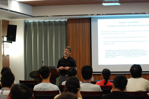 2018年7月9日,宾夕法尼亚州立大学天文系和统计系Eric D. Feigelson教授访问紫金山天文台,并在仙林园区3号楼302会议室做了题为“ARIMA, TCF and RF: A new statistical approach to exoplanet transit detection”的学术报告,天文学院副院长吴雪峰研究员主持了本次报告。
