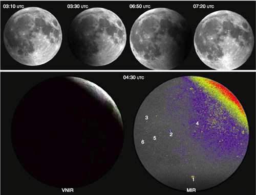 过去许多地基望远镜、绕月卫星都对月全食开展过研究。相对于地基望远镜,空间平台观测可避免大气的影响,获得可靠的月球光度/颜色/温度变化。相对于绕月卫星一次性仅对局部地区观测,地球轨道平台可一次性对整个月盘成像,揭示全月盘的光度/颜色/温度空间变化。紫金山天文台吴昀昭研究员利用我国高分四号地球静止卫星多谱段数据开展了月食观测研究,初步成果以“The ‘super blood wolf Moon’ from space”为题发表在《自然 天文学》(Nature Astronomy)“新闻与观点”(News & Views)栏目。
