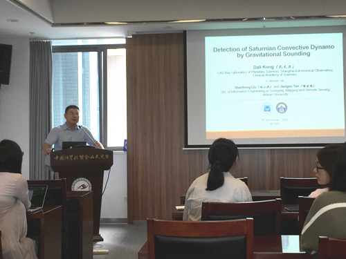 9月4日,紫金山天文台第五十七期青年论坛在紫台仙林园区顺利举办。本次论坛邀请到上海天文台的孔大力研究员,他为大家带来了题为“Possible Approach to Detect Mysterious Saturnian Convective Dynamo via its Gravitational Field”的学术报告。