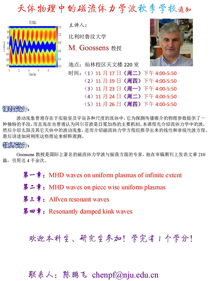 11月17-26日:“南京大学天体物理中的磁流体力学波”系列讲座