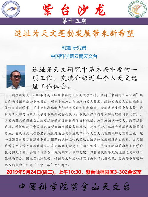 9月24日 “紫台沙龙”第十五期:选址为天文蓬勃发展带来新希望