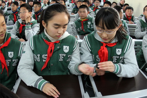 王思潮特意带了一块陨石,让同学们触摸天外来客