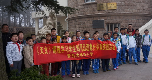 2015年3月28日,青岛观象台迎来了一批陌生而又特殊的客人——大名路小学的老师和同学们。陌生是因为这是大名路小学的同学们第一次到青岛观象台参观;特殊是因为此次大名路小学师生不仅仅是来参观,还有一个特殊的任务:大名路小学天文课程实践基地挂牌仪式。
