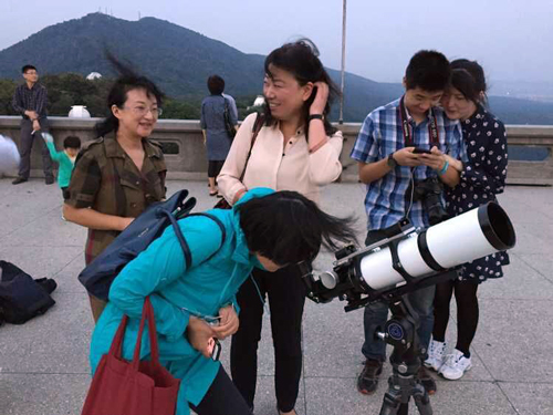 南京市科普教育基地应用协会理事在观看月亮