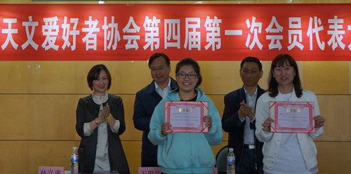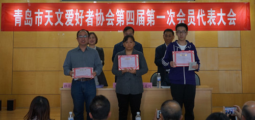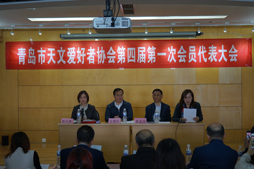 2017年4月26日,青岛市天文爱好者协会第四届第一次会员代表大会在青岛市科技馆隆重召开。青岛市科协副主席王崇江、市民间组织管理局社团处处长袁孟河、市科协学会部部长苏文民、市科技馆馆长戈洪奎及青岛市天文爱好者协会理事和会员代表百余人参加了此次大会。