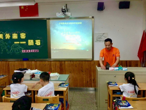 此外,5月24日上午,紫台周团辉博士应邀为赣榆一中高二年级全体师生400多人作了题为“我们的恒星——太阳”科普报告,受到热烈欢迎。5月24日下午,张旸应鼓楼区科协邀请为紫竹苑小学作题为“人类太空探索的故事”的科普报告。