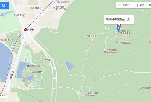 1、紫金山天文台科普园区位置:南京市太平门外紫金山第三峰。如图所示。