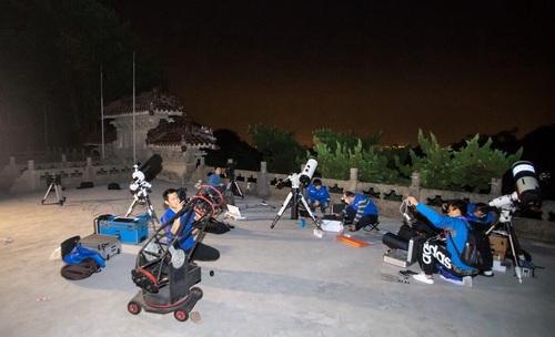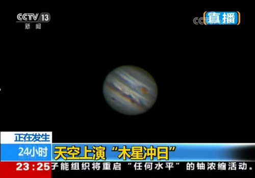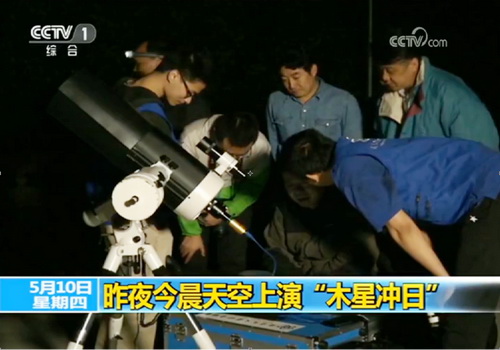 在活动现场,有三台天文望远镜用来拍摄木星,其中二台望远镜拍摄照片,一台望远镜为央视直播提供视频信号。另有一架自制望远镜供现场人员用来目视观测。望远镜中,木星明亮夺目,著名的四颗伽利略卫星围绕在木星周围,期间还发生了木卫二凌木的天象,木卫二正好挡在木星的前面,通过望远镜可以清晰看到它黑色的身影。这次活动经过央视的直播使得亿万观众可以在手机和电视上轻松目睹到木星的容貌, 取得了直观、深入的宣传效果。
