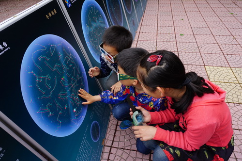 他们或驻足于3D展板前,透过眼镜感受立体星空的美丽;或围坐在天球仪旁,听工作人员讲述星座中的科学;或针对自己内心关于宇宙的疑惑,与工作人员及志愿者积极交流;或边走边拍,参与微博上留言互动……每个人都找得到自己的兴趣点,每个人都有所获益,而这正是公众科学日的目的。