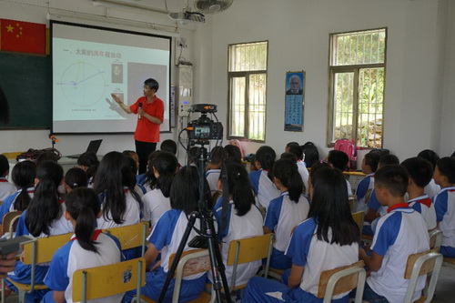 20日上午,作为本次活动的重要组成部分,傅燕宁研究员等一行多人来到南澳县青澳学校,举办该校历史上首次科普讲座,受到学校高度重视和热烈欢迎。傅燕宁研究员以平易通俗的语言,和蔼可亲地向同学们讲解了有关太阳视运动和历法、农历的知识,在座的校长和同学们聚精会神、兴趣盎然,南澳县科协林韵主席等一行多人也闻讯赶来听课。接下来,青岛观象台孙立南台长给大家上了一堂生动的科学手工课,她向在座的师生分发剪纸圭表,带领大家用剪刀、胶纸为工具,奇妙地做出可以测量日影的、简约而不简单的纸质圭表。