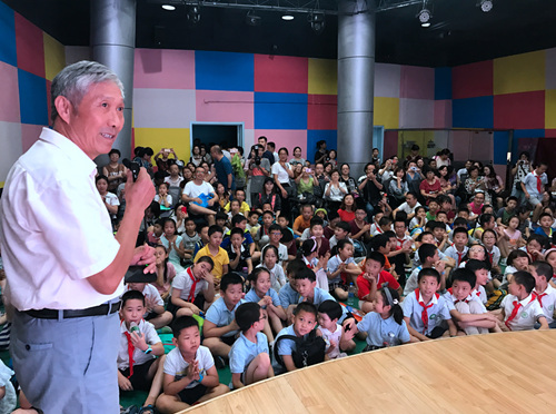 27日下午6点,葛永良老师的《又见红月亮》科普讲座正式开始,江苏科技馆的科学剧场内挤满了观众,来自南京多所小学的小学生和家长共计200多人聆听了本次讲座。报告中,葛永良为大家展示了上次月全食时的照片,带领大家回顾了发生在今年1月31日的超级“蓝色”红月亮,随后向大家讲解了月全食的形成原理,对本次的月全食进行了详细介绍;同时他还介绍了月球运行规律,月相变化规律,中国农历历法等天文知识。报告中,现场的小朋友与葛老师进行了互动,氛围十分热烈。大家对上次的月全食印象深刻,听了葛永良的报告后对本次的月全食也是更加期待。