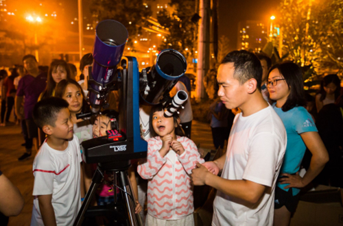 2018年中秋佳节来临之际,为丰富本台职工子女的业余生活,展现节日浓烈氛围,紫金山天文台科普部于9月22日晚在栖霞区仙林湖公园举办了一场“仙林湖中秋赏月”活动。米德中国公司、江苏星飞宏光学有限公司和南京天文爱好者协会联合举办了本次活动。