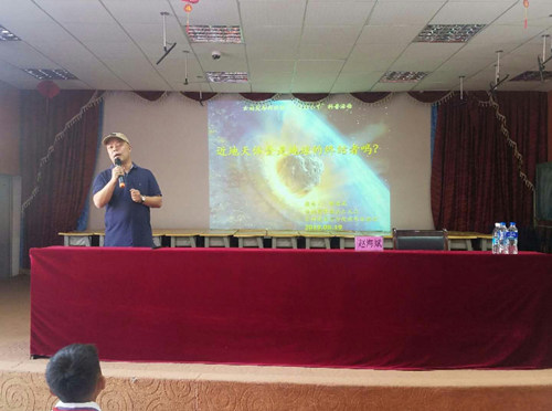 在5月20日至24日,紫金山天文台盱眙观测站首席科学家赵海斌研究员到云南禄丰、牟定、武定、永仁、元谋的县级中学作了五场题为“近地天体会是地球的终结者吗”的科普报告。赵海斌说:一直以来地球无时不刻地遭受地外天体的撞击,天体撞击曾经给地球带来过巨大的灾难,地球上多次生物灭绝事件都与天体撞击有着密切联系,因此,建立近地天体监测系统,搜索发现可能威胁地球的近地小行星十分必要。现场的师生被赵海斌的报告深深吸引,听得兴致勃勃,会后赵海斌研究员还与同学们进行了互动交流。五场报告听众人数共计超过1500人。这是中科院科学家深入经济欠发达地区普及天文知识,受到热烈欢迎。