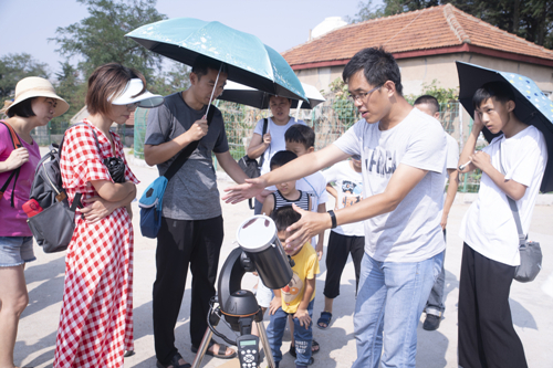 9月8日,青岛观象山西山平台上人声鼎沸热闹非凡,由中科院紫金山天文台青岛观象台及青岛市天文爱好者协会共同组织的全国科普日系列活动在观象山西山平台如期举行。