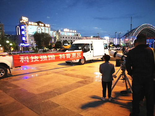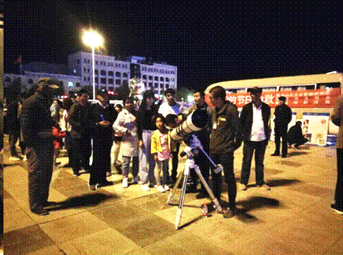 为隆重庆祝中华人民共和国成立70周年、青海解放70周年,在中秋佳节来临之际,本着宣传“科技服务科学、服务大众”的工作原则,努力提高德令哈市广大干部职工、农牧民、青少年科学文化素质,在海西州直机关工委文明办、海西州科技局和德令哈市城市管理综合行政执法局的大力支持下,2019年9月13日(农历八月十五)晚,青海观测站党支部在德令哈市奥运广场举办了“我们的节日—中秋”赏月科普活动。