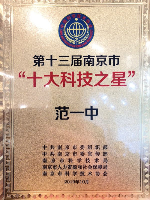 10月21日,第九届南京科技学术年会在南京科技馆举行,由南京市委组织部、市委宣传部、市科委、市人社局和市科协等部门联合开展的第十三届南京市“十大科技之星”(简称“科星”)评选结果公布;省科协领导,市领导为入选第十三届南京市“十大科技之星” 颁发证书。紫台范一中研究员荣膺第十三届南京市“十大科技之星”!
