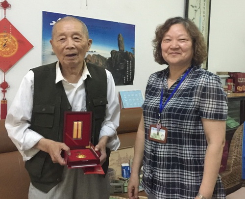 看望期间,张丽萍一行先后来到抗战时期参加革命工作的老同志赵文彪和刘以书家中,详细询问了他们的身体状况和生活情况。看到二位老人一个已近九旬,一个已过九旬,但都仍然精神矍铄,大家十分高兴。随行看望的同志们仔细倾听了老同志们的革命经历,了解到艰苦卓绝的战争年代,他们转战南北,参加了大大小小无以计数的战斗,至今身上还留着弹片,阴雨天仍隐隐作痛……大家深刻认识到没有他们的出生入死和英勇奋斗,就没有我们今天的幸福生活。他们在抗日战争中英勇战斗、浴血奋战,为实现民族独立和人民解放做出了重要贡献。张书记为他们送上了抗战胜利70周年的纪念章及慰问金,祝愿他们健康长寿。老同志们对党和国家的关怀表达了真挚的感谢之情。